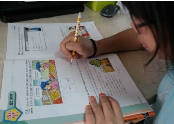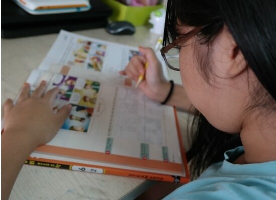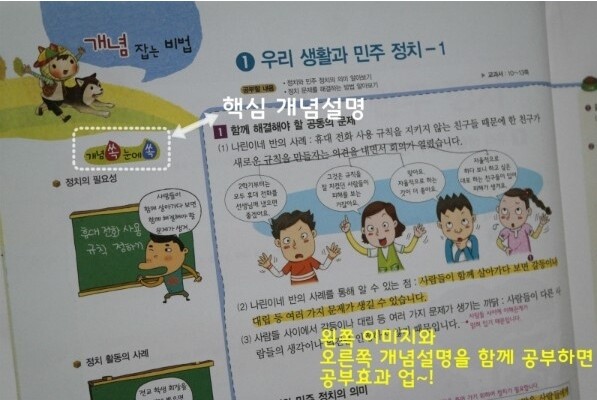 책 속 내용을 이해하도록 돕고 있어요.