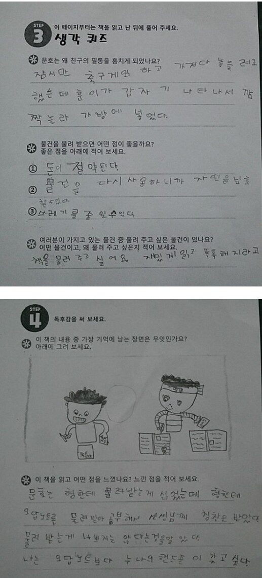 책과 연관지은 활동지를 통해