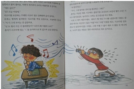 훈이는 새 리코더를 사서 신이 났네요.
