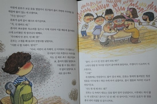 둘이 남게 된 문호는 선생님께 사실을 말하고, 훈이에게 미안하다고 사과했어요.
