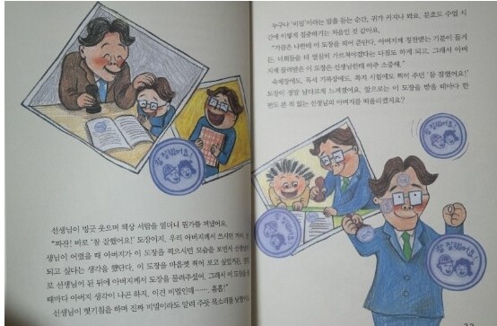 그리고 아버지에게서 물려받은 <참 잘했어요> 도장에 대한 비밀이야기로 아이들의 호기심을 자극하지요.