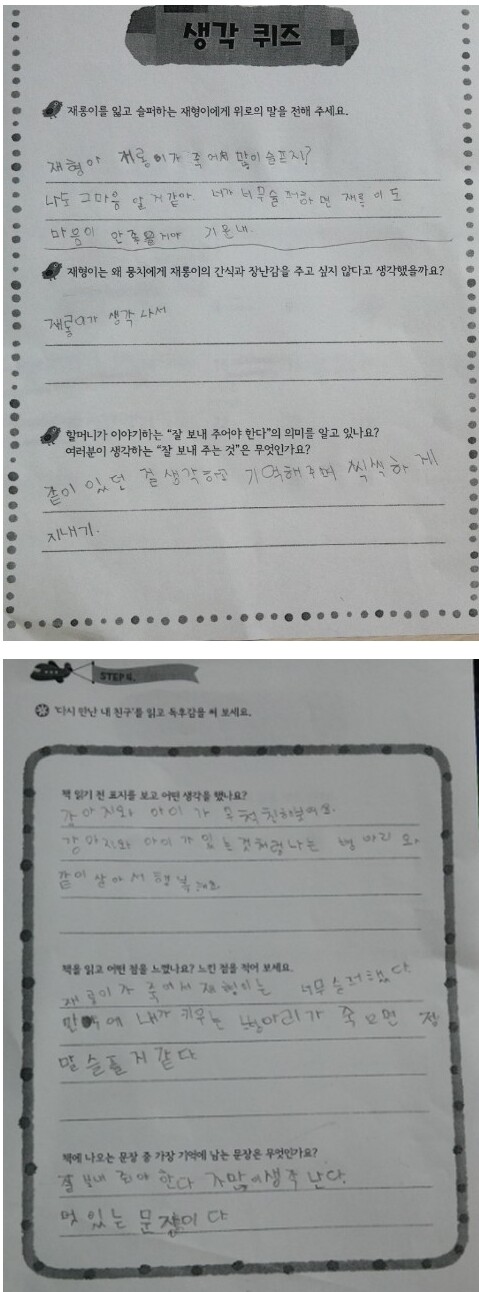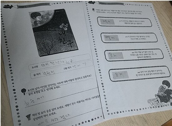 내용 파악과 글을 써 보는 독후활동지를 풀어봤어요.
