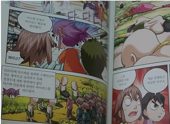 바로 면역력이 없던 아즈텍인들에게 천연두 바이러스를 퍼뜨려서라고 하네요.