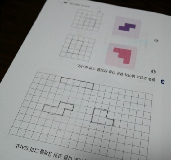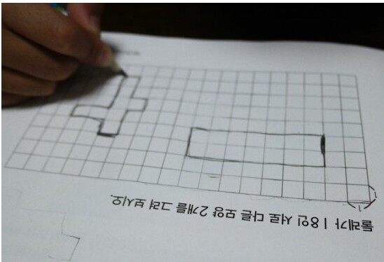 선을 살짝 그어 작은 사각형이 몇개 있나 세어보게 했어요.