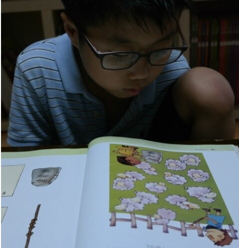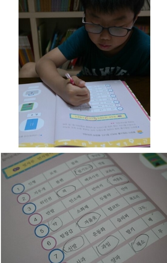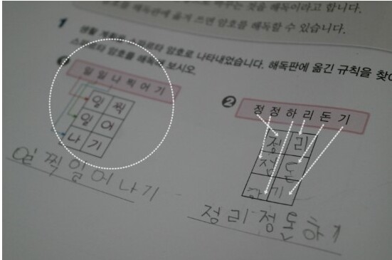 아들은 완전 집중하며 해독했어요.