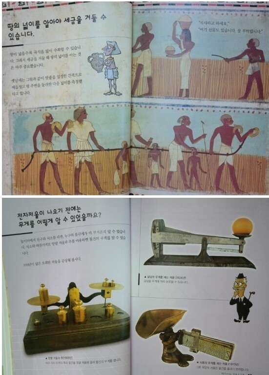 무게를 재는데 사용했던 도구 설명을 이야기로 보고 있어요.