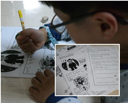 그런데 받아쓰기가 끝나자마자 쉬는시간없이 바로 다음시간 학습을 하구요