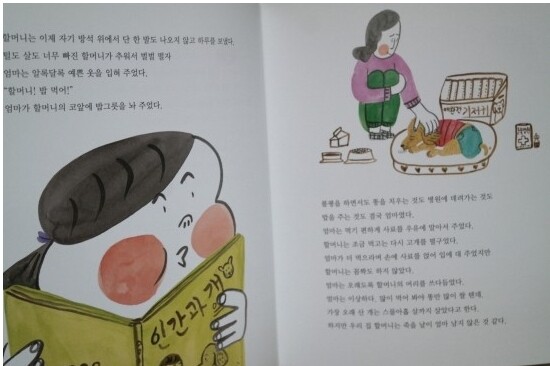 맞아요..이야기 중심인물인 할머니는 늙은 개를 말하고 있어요.