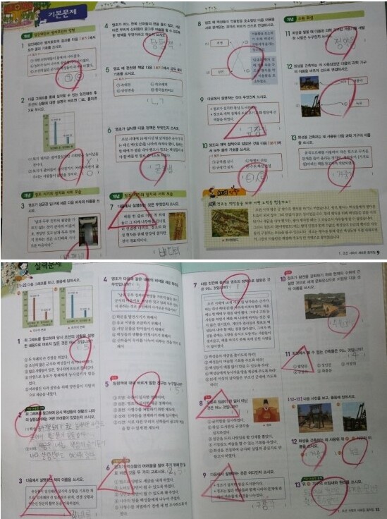 과목별 문제집 속에는 또다시 학교시험대비북이