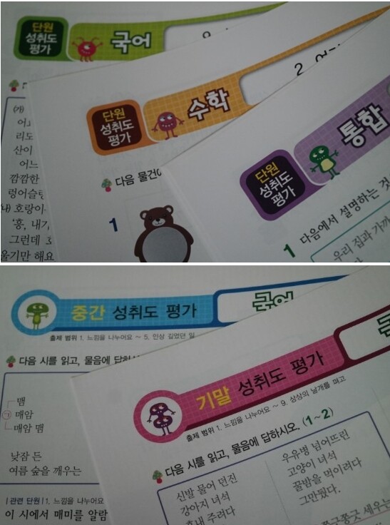 24 페이지 정도의 분량으로 단원별 단원평가와 학기말 평가1회 구성되어 있어서