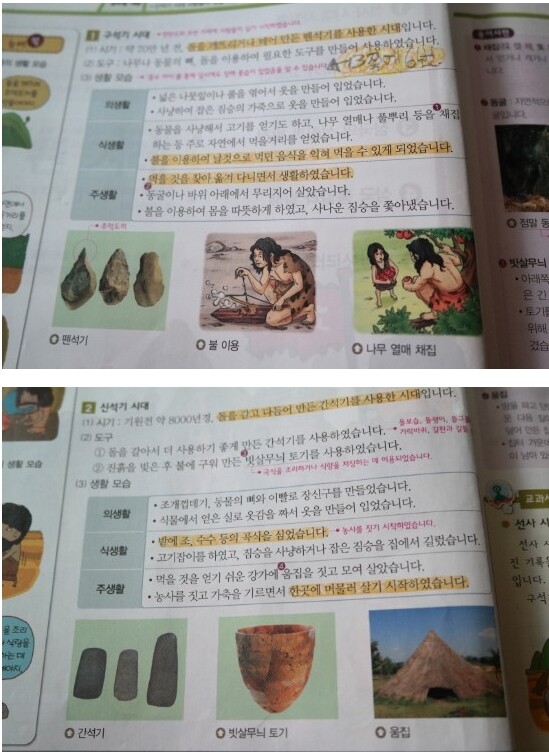 구석기와 신석기의... 의식주별로 시대적 생활상 비교가