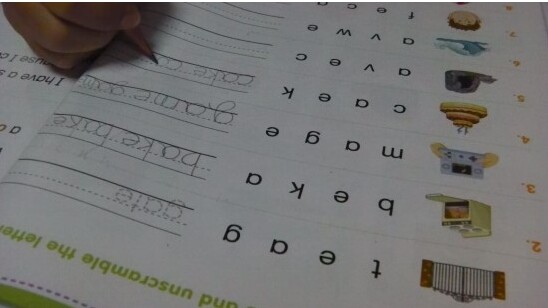 뒤섞인 철자를 바르게 고치고, 그림에 맞는 단어를 또 써보도록 하네요.