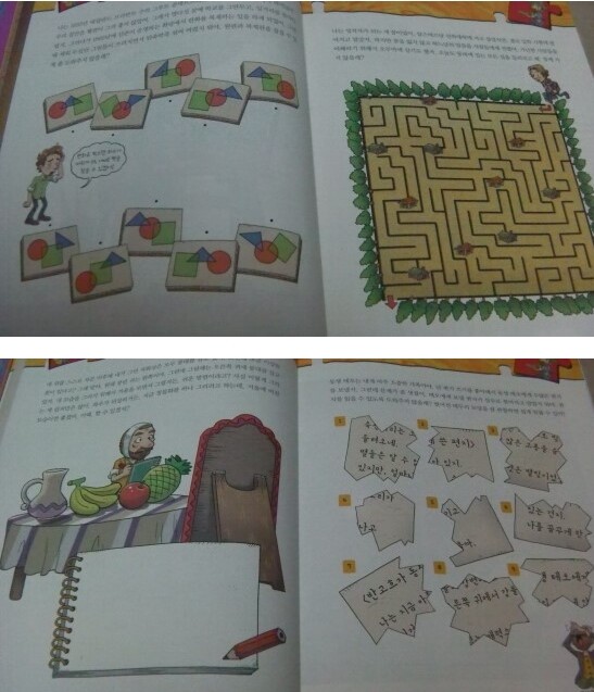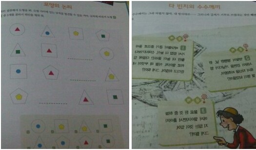 명화 조각찾기, 다른 그림찾기, 낱말 블록 맞추기, 모스부호 해독하기, 모양의 논리 규칙찾기,
