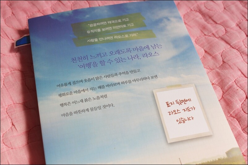 책이 참 독특하네요. 요즘 이런 책들이 많은듯 싶어요. 무슨 숨은 그림 찾기처럼 책 속의 책을 쳐다보는 재미가 솔솔하네요. ^^ 친절하게도 책 속에 라오스 지도가 들어 있다고 하더니만 이렇게 책 표지 안쪽에 인쇄가 되어 있더라고요. 더욱 친절하시려면 라오스 여행 지도라도 하나 넣어 두시는 센스를 발휘해 주셨으면 후일 라오스 여행할 때 도움이 되었을 터인데... 그리고 여행기를 쓰시는 분들이면 자신이 갔던 숙박업소, 여행 루트, 교통편등을 친절하게 소개해 주심 더욱 감사할 텐데... 처음 가보는 곳은 늘 두렵거든요. 근데 다들 여행에 있었던 이야기는 가득한데... 정작 여행 갈 때 도움 되는 이야기는 많지 않은 경우가 많아서 조금 아쉽답니다. ^^