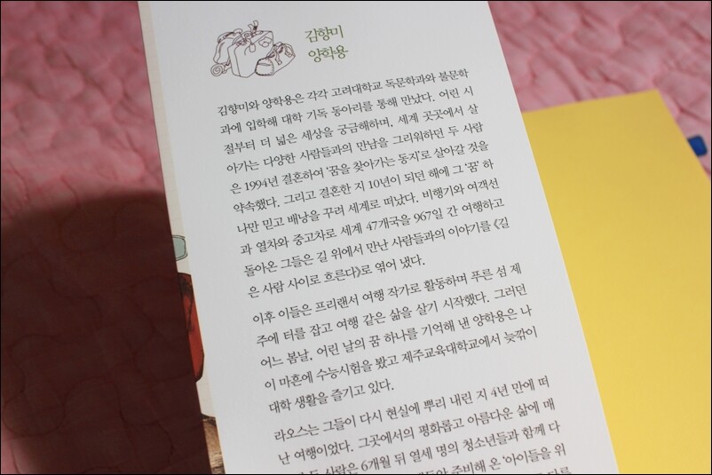 책을 읽는 내내 부러움에 저도 모르게 지고 있었답니다. 부러우면 지는 거라는데... 네... 전 졌어요. 그것도 한없이 많이요~~ 그런데 안 부러울 수가 없더라고요. 여행을 좋아하는 제가 바라고 바라는 삶이 바로 부부가 함께 여행을 다니는 거랍니다. 전 사진 찍는 것을 좋아하고, 저희 신랑은 글을 쓰는 것을 좋아하니 우리 부부도 함께 여행을 다니며 사진은 제가 글은 신랑이 써 주면 좋겠다 싶었는데... 저희 보다도 벌써 이런 삶을 살고 계신 분이 있으시더라고요. 그래서 더없이 부러웠어요. 저도 언제고 훌훌 털어 버리고 이렇게 훌쩍 떠날 수 있는 날이 오겠죠?