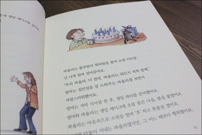 이 책은 한국성폭력 상담소 추천도서이기도 하답니다. 아무래도 요즘 이런 일이 발생하다보니 추천도서로 선정이 된 모양입니다. 여자 아이를 두신 부모라면 한번쯤 아이와 함께 이 책을 보길 저 또한 권한답니다. 이 책을 함께 본 후에 아이에게 설명하거나 이해시켜 주기에 아주 자연스럽고 좋더라고요. 하지만 이 책이 좀 과한 설명일 수도 있긴 합니다. ^^ 책 내용을 읽어보면 살짝 그런 느낌이 든답니다. 우리 나라에서는 특히나 책 내용과 같은 일이 있을 때 그정도는 괜찮다고 느낄 수 있기 때문이랍니다. 하지만 책 적정 연령이 초등학교 1~2학년인걸 감안하면 아이가 이해할 수 있는 범위 내에서 설명해 주기 위해서 그런 것도 같습니다. 물론 아이가 느끼는 느낌이 가장 중요한 것이니까요. 겉으로는 이정도 신체 접촉은 괜찮다 싶게 보이더라도 아이가 만약 기분이 나빴다면 아이의 기분이 맞는 것일테니까요. 우선 그 점을 강조하며 아이에게 설명해 줘야 할듯 싶습니다. 독자 적정 대상은 초등학교 1~2학년 입니다. 핵심 주제는 의사표현과 가족이랍니다. 꼭 아이가 싫어하는 신체 접촉 뿐만 아니라 아이에 의견을 존중해 주고 가족의 소중함을 느낄 수 있는 책이기도 하니까요. 아이를 위한 책을 주로 쓰시는 분이랍니다. 주제도 다양한 책을 많이 쓰시는 분이네요. 아직 이분의 다른 책을 본적은 없지만 기회가 닿으면 꼭 봐야겠어요. ^^ 이야기를 아이가 편안하게 볼 수 있도록 쓰시더라고요. 파올라의 생일이랍니다. 하지만 파올라는 엄마 밖에 없습니다. 외국에서는 자연스런 풍경이지만 우리 나라에서는 홀로 아이를 키우는 엄마라면 참 힘드시죠? 주위의 시선도 참 그렇고요. 전 우선 이 책을 읽으면서 이 부분도 아이에게 설명해 주었어요. 엄마 아빠가 다 함께 살아야 하지만 그렇지 못한 사람도 있다고요. 하지만 그걸 놀리거나 그 아이에게 상처가 될말은 하는 것이 아니라고요. 그건 그 아이의 잘못이 아니니까요. 미리 이런 이야기를 해두는 것은 가끔 육아 포털사이트에서 심심치 않게 올라오는 홀로 아이를 키우는 엄마들의 상처이야기를 읽었기 때문이랍니다. 생각보다 그걸 가지고 놀리고 하는 아이들이 많은가봐요. 심지어는 왕따를 주는 아이들도 있다고 하더라고요. 그러니 미리부터 부모가 이런 문제를 자신의 자녀에게 교육시켜두면 나중에 그런 나쁜 아이는 되지 않겠죠? 사진으로 보기엔 파올라가 불쾌감을 느끼지 않을 정도랍니다. 하지만 파올라는 분명 불쾌감을 느꼈습니다. 이웃 할아버지가 피아노를 함께 치며 너무 가까이 신체 접촉을 해서 말이죠. 이 부분에선 참 찬반이 갈릴 수 있겠어요. 하지만 중요한 것은 아이의 느낌입니다. 아이가 불쾌했다면 충분히 그럴 수 있다고 생각한답니다. 우선 어느 정도 신체 접촉을 허용하느냐보다 아이가 기분이 나빴는지 아닌지를 먼저 이야기 하는 기준이 중요한듯 싶습니다. 그 후에 신체 접촉이 어느 정도 가능한지를 일러 주시는 것이 좋을듯 싶습니다. 간혹 설명이 과했던 건지 아빠를 피한다는 이야기도 올라 오는걸 보면 말입니다. ^^ 파올라는 결국 말 못하고 끙끙 혼자 앓다가 그만 풀이 죽어 버렸습니다. 홀로 아이를 키우는 엄마를 생각하면 이웃 할아버지 댁에 있는 것이 좋을테지만 자신을 생각하면 이웃 할아버지 댁에 가는 것이 너무 싫거든요. 신체 접촉 뿐만 아니라 어떤 것이든 아이의 의사 표현은 중요하답니다. 물론 간혹 아이의 의사 표현이 강해서 엄마가 기분 나쁠 수도 있지만... 그래도 아이가 의사 표현을 잘 해야만 나가서도 자신의 의견을 잘 말할 수 있다고 하네요. 만약 부모가 자꾸만 주눅 들게 혼내거나 한다면 아이는 점점 의기소침해져 소극적인 아이가 될 수 있다고 하니 이점 주의하며 설명해 주세요. 참! 엄마 노릇 하기 힘듭니다. 아이의 입장에서 이해하고 보듬어야 할 문제들이 너무 많아요. ^^ 책 뒤에는 현명하게 대처하는 방법도 나와 있답니다. 아이와 함께 책을 다 본 후 설명하고 같이 이야기 해보기에 좋은 내용들이 담겨져 있습니다. 이런 이야기는 한번으로 그치면 안될 것 같습니다. 아이가 기분이 조금 좋은 날이나 아이와 이야기를 해볼 수 있는 날에는 아이와 함께 조금씩 이야기를 꺼내 숙지를 시켜 두는 것이 좋을듯 싶습니다. 저는 아이가 아직 어리지만 이해력이 어느 정도 있어서 조심스럽게 천천히 이야기를 해 주었답니다. 아직은 그 경계선이 모호해서 조금 이해를 못하기는 하지만 그래도 자주 이야기를 해주어야 할듯 싶어요. 내 아이를 여자로 보는 남성들을 무조건 가려 낼 수는 없으니 미리부터 우리 아이에게 교육을 시켜 두는 편이 더 좋을듯 싶습니다. 이땅에서 부디 그런 몹쓸 남성들이 없어지길 희망하며....