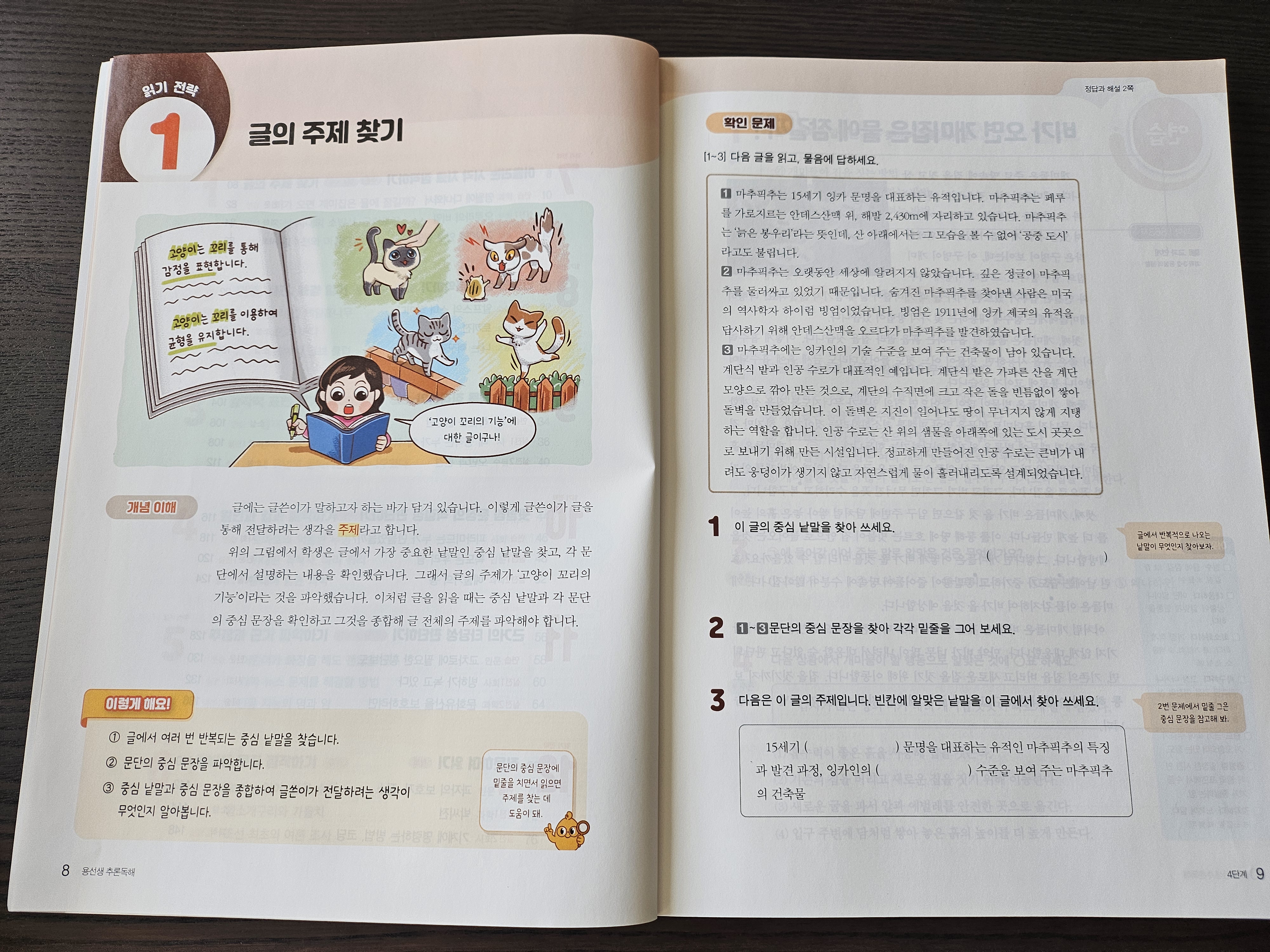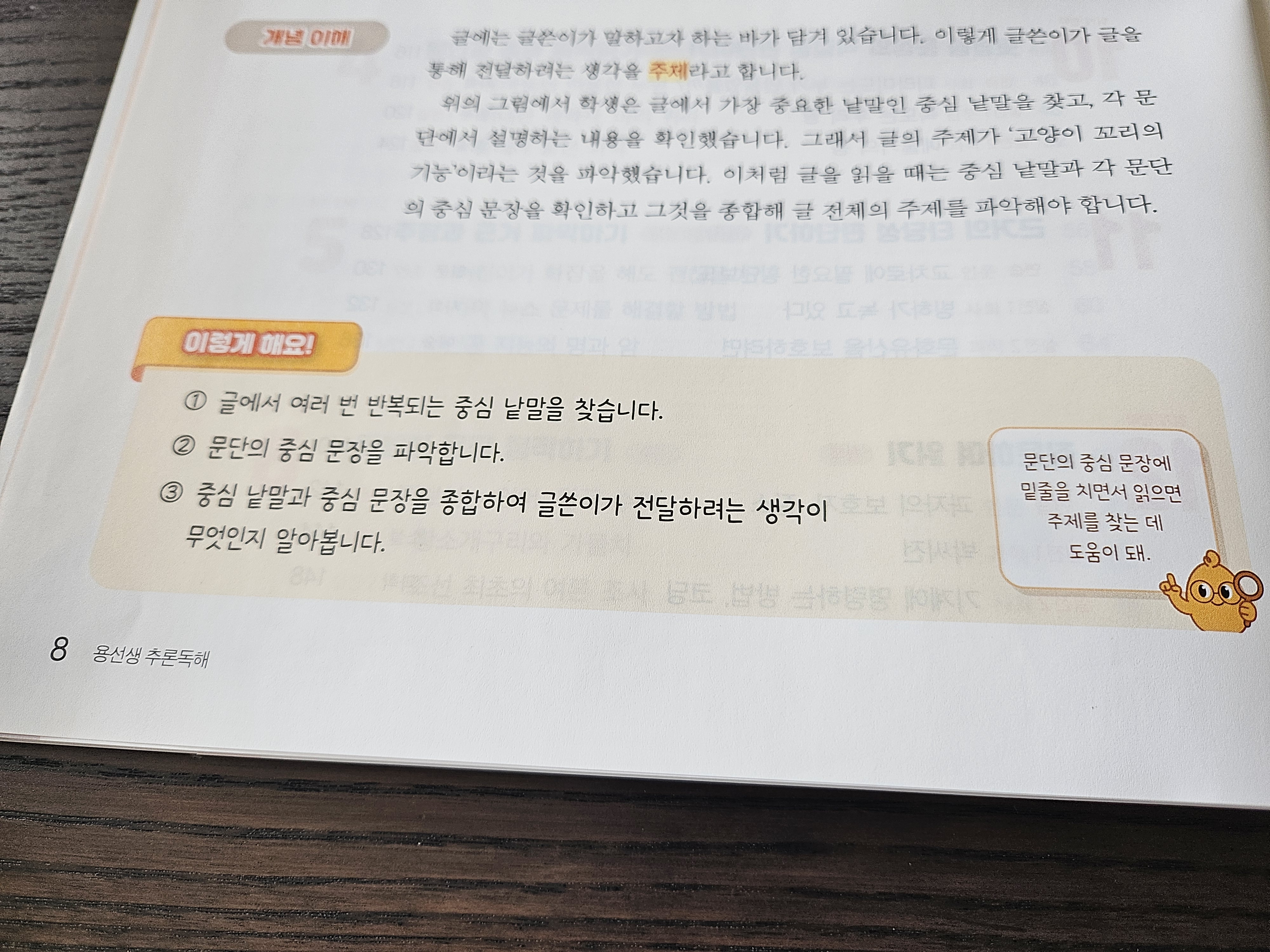 스스로 확인을 해봄으로써 스스로 앞, 뒤 내용을 추론하며 읽는 습관을 기르기 좋은 것 같아요