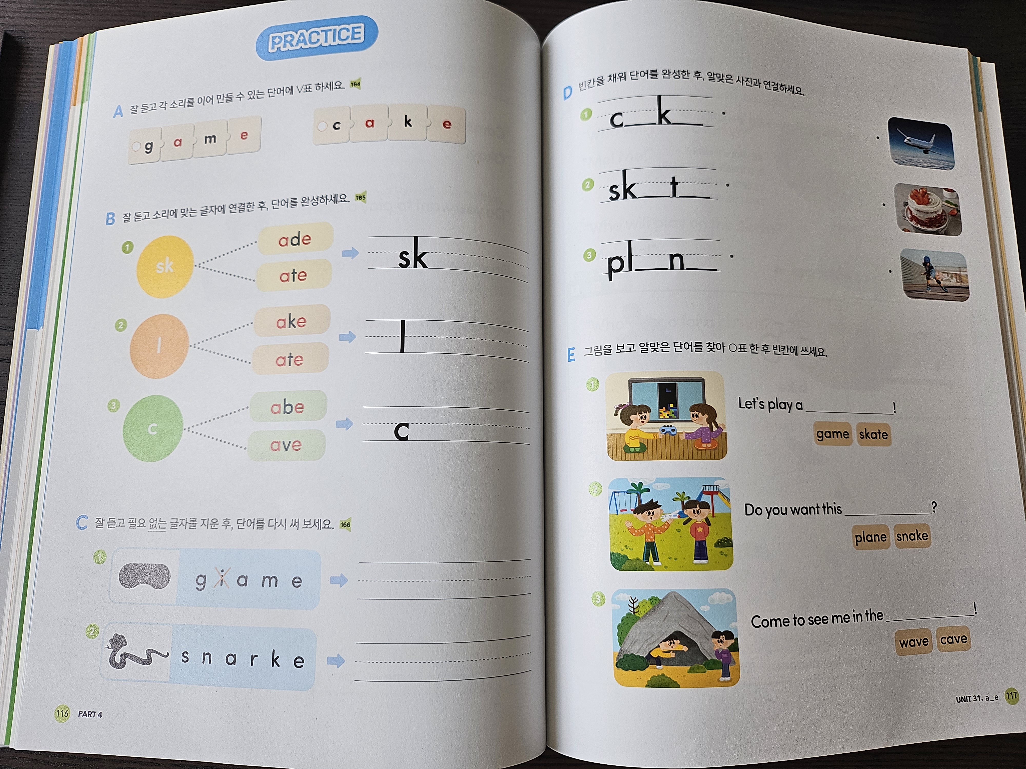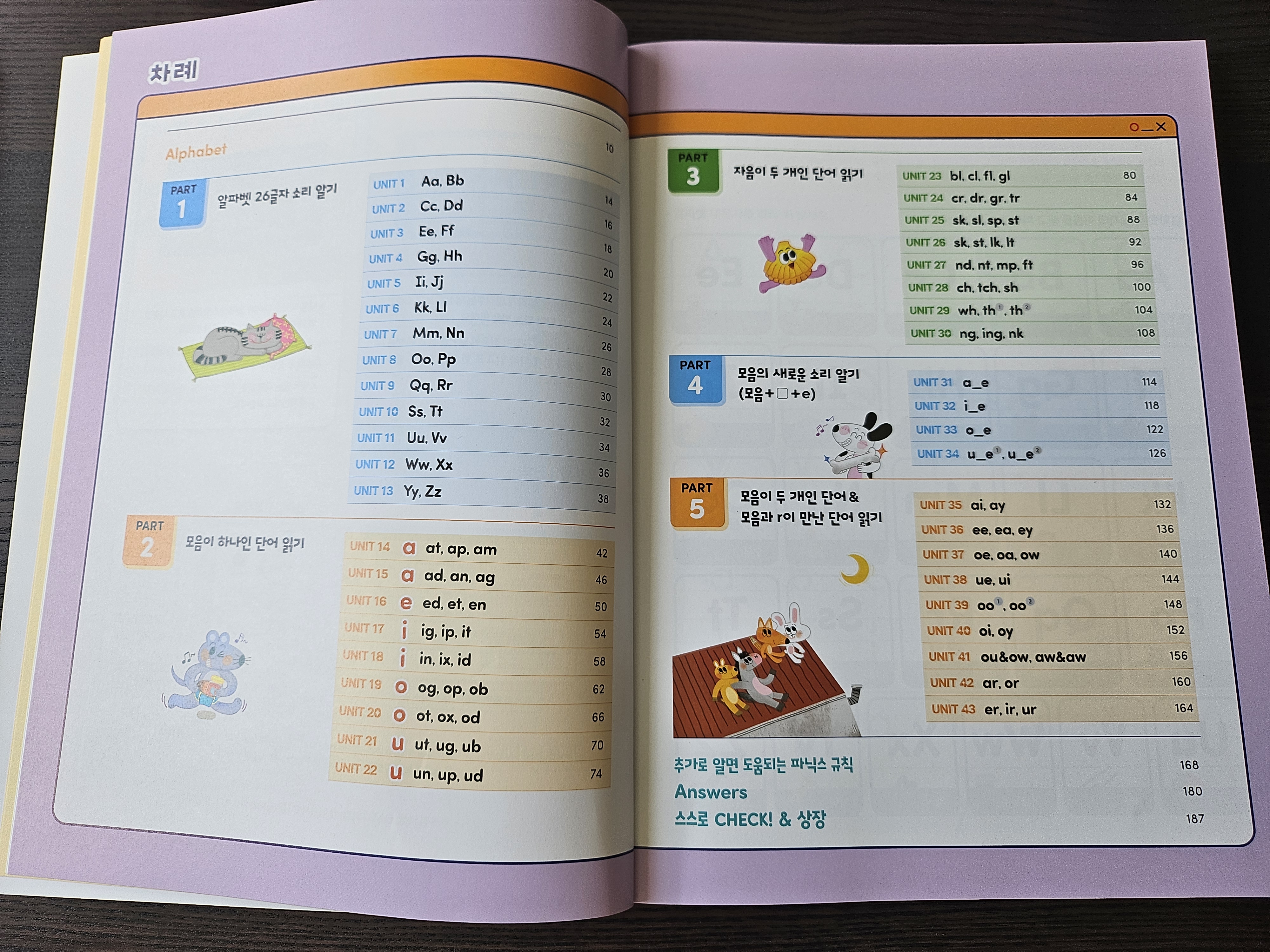 파트별로 나누어 아이들이 파닉스 규칙을 체계적으로 이해하고 조합하여 소리를 낼 수 있도록