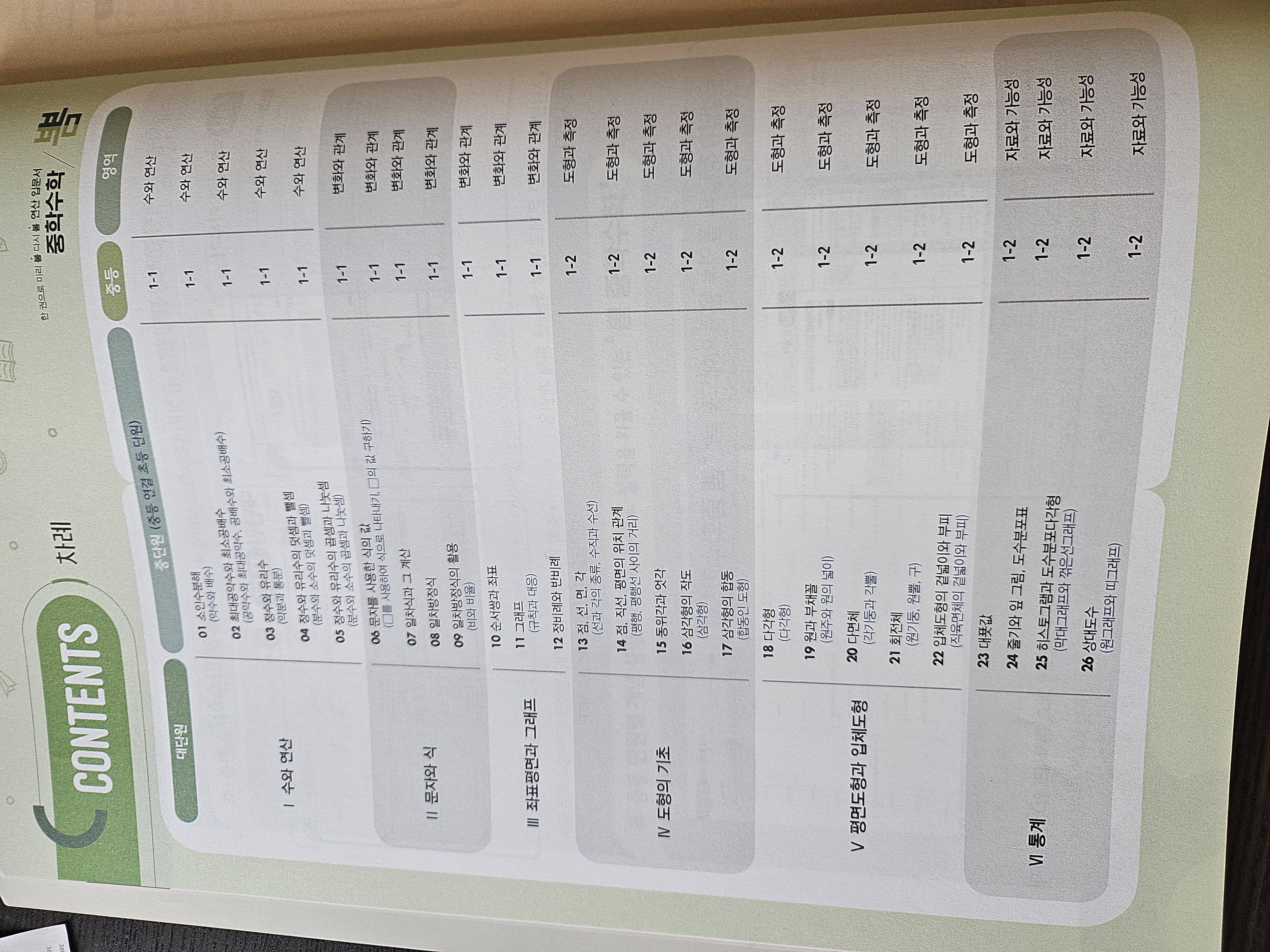 목차를 보니 새로 개정되는 중학과정인가봐요!