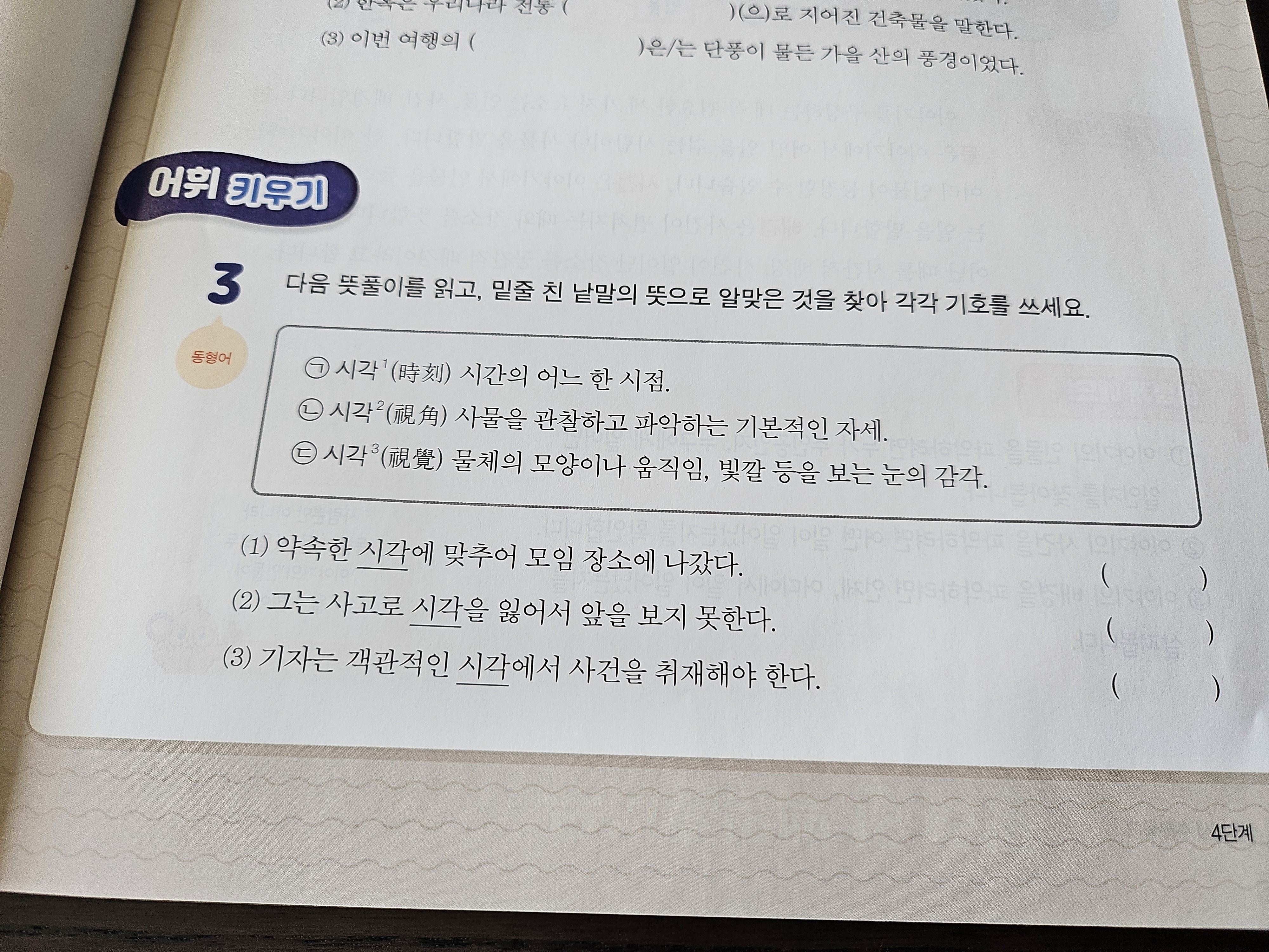 '어휘 키우기' 코너에서는 헷갈리는 말이나 동형어, 다의어, 한자어 등 다양한 어휘를 학습하며