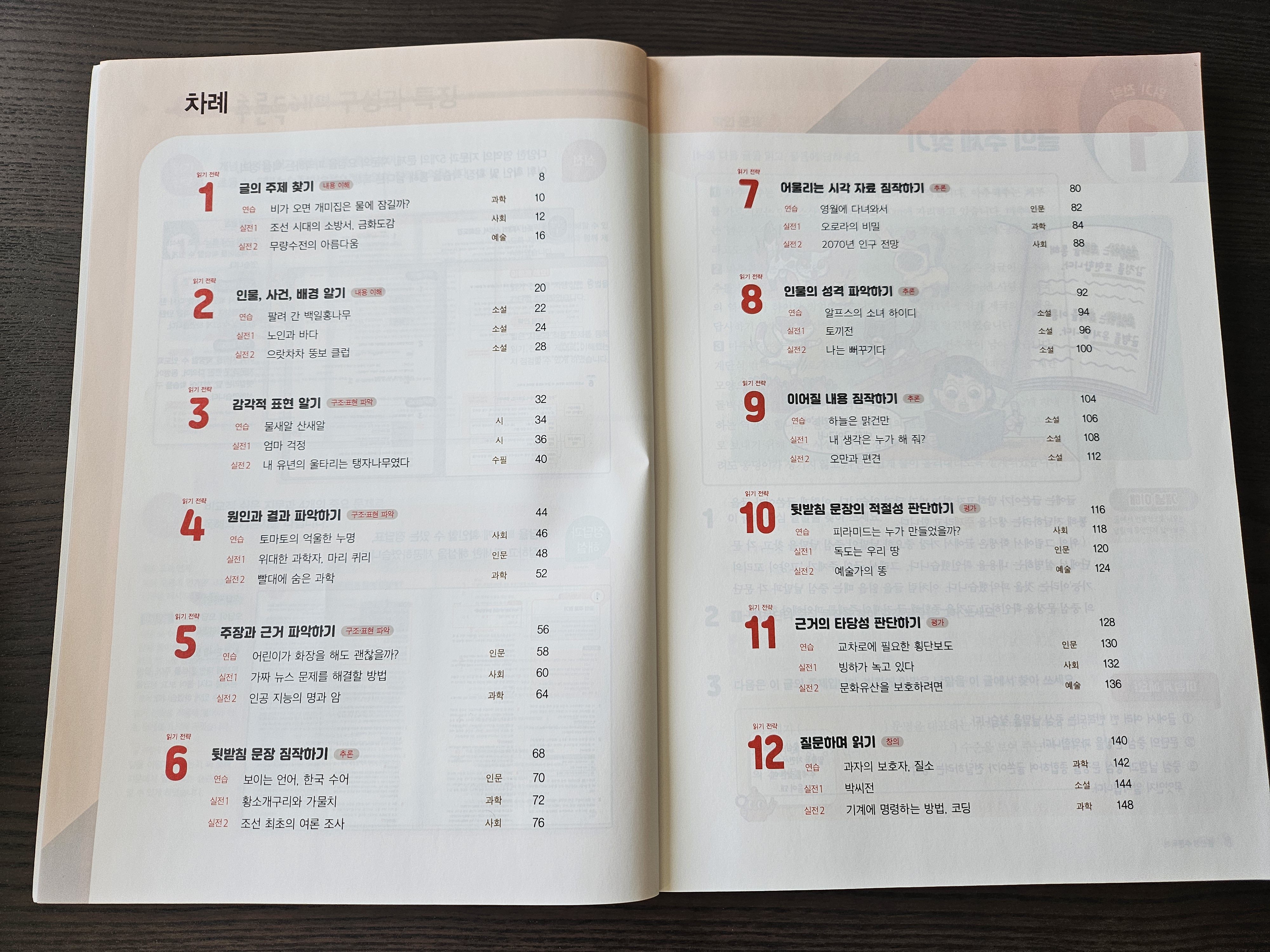 목차를 보니 문학과 비문학이 적절히 분포되어 있네요