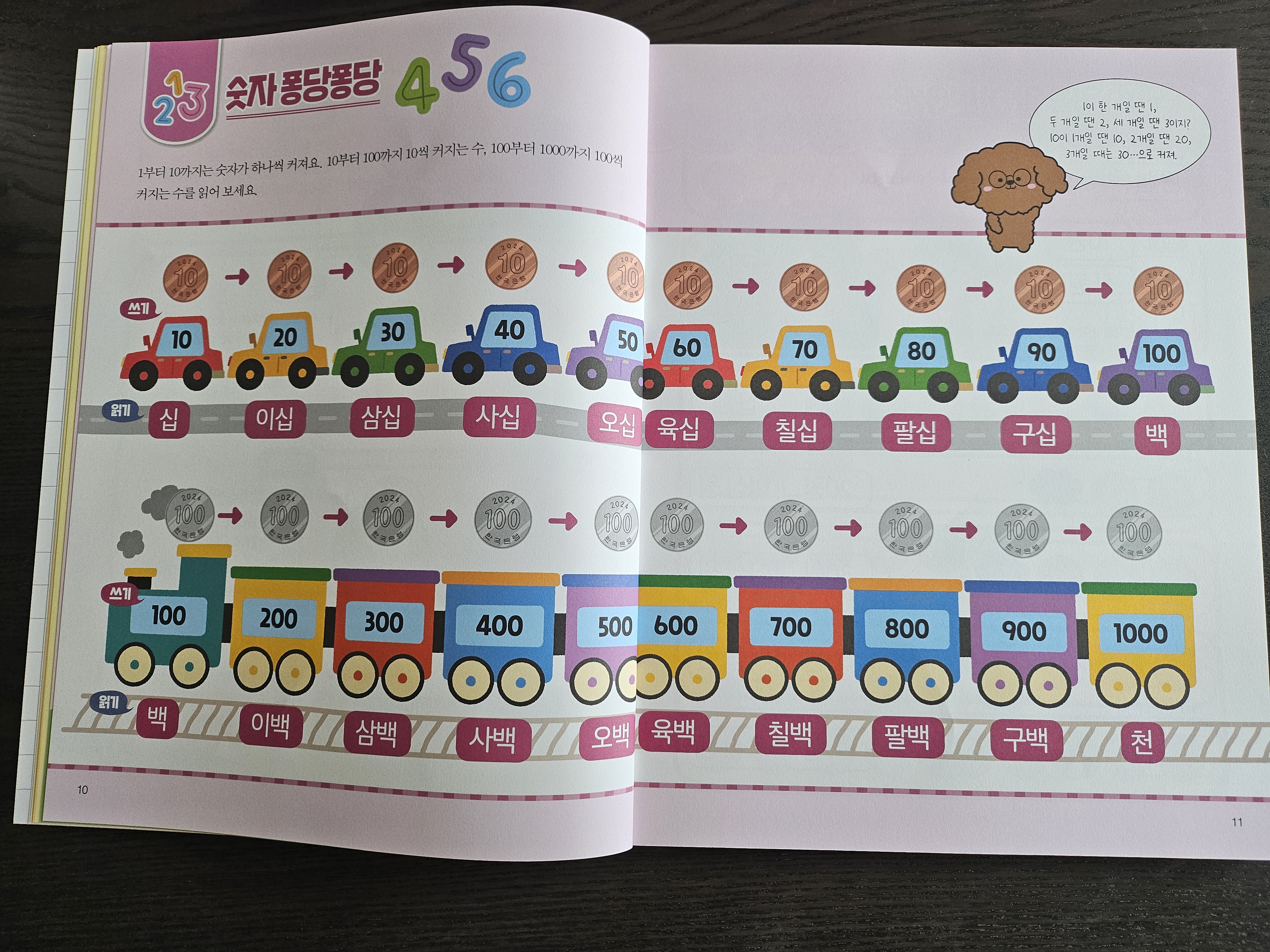 1원과 5원 동전은 거의 쓰이지 않아서 10부터 띄어 세기를 해보고