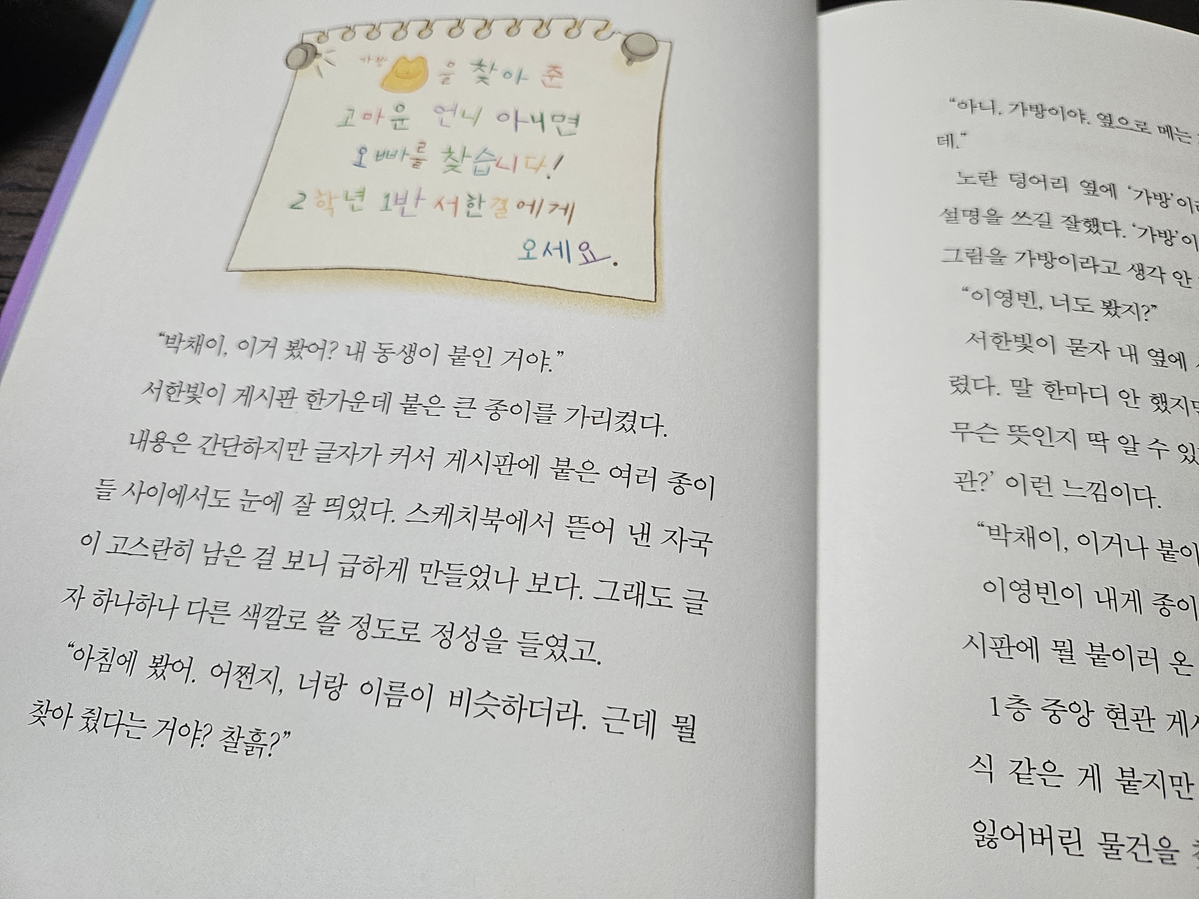 박채이는 서한빛으로부터 동생 한결이의 가방을 찾아 준 사람을 찾는다는 얘기를 들어요