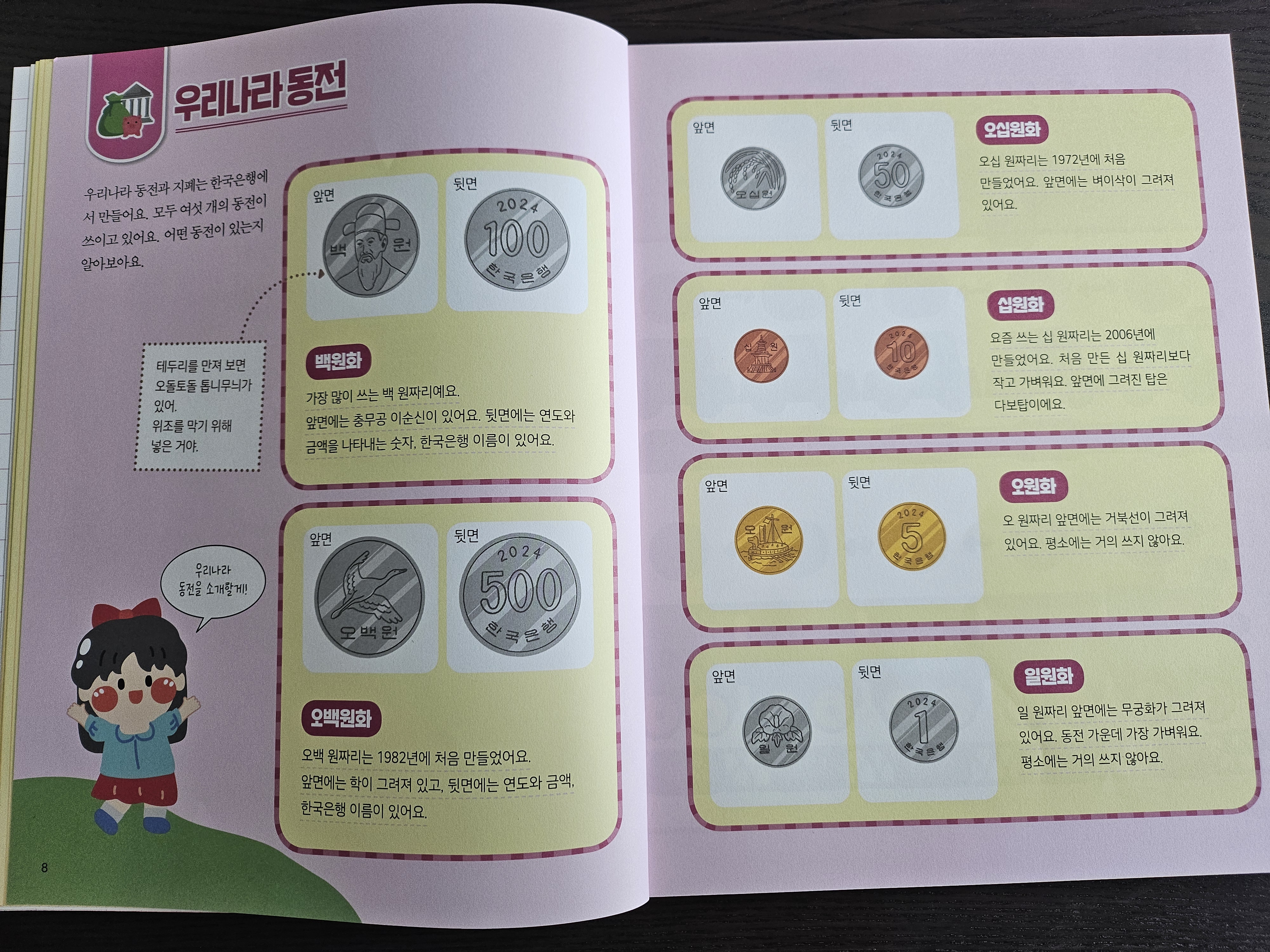 처음 돈의 개념을 알아가는 아이들이 동전의 앞 면과 뒷면의 그림을 잘 인식할 수 있도록