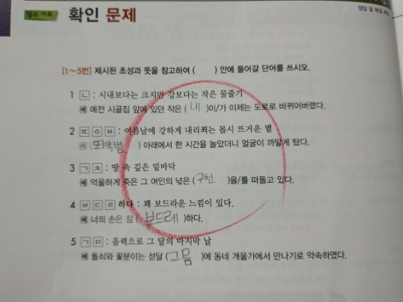 앞에서 접했던 어휘들을 다시 반복연습해 볼 수 있도록 했어요.