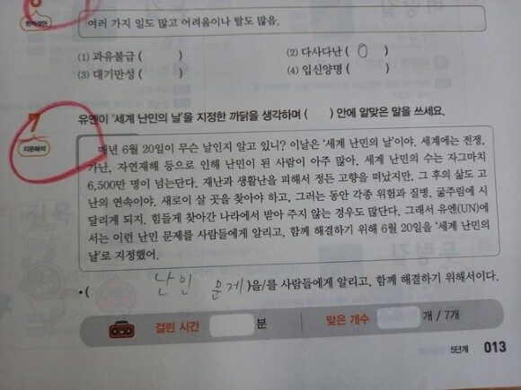 딱 학교 시험문제처럼 되어 있어서 시험보는것 처럼 풀어 보았는데요...