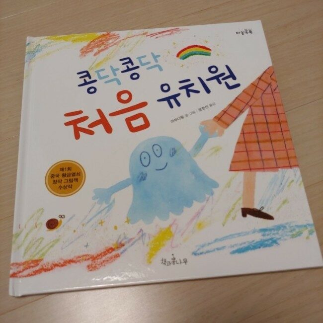 그래서 미리 <콩당콩닥 처음 유치원>이라는 동화책을 읽어주면 자신의 이야기같아서 좀 더 쉽게 유치원 생활을 적응하지 않을까 하는 기대감이 생기기도 했다. 이 책의 주인공은 처음 유치원에 오게 된 꼬마 요괴로 새로운 환경과 친구들에게 낯설어하며 잘 적응하지 못하는 행동을 보인다. 아. 우리아이의 모습이 오버랩되면서 남일 같이 느껴지지 않았다ㅠㅠ