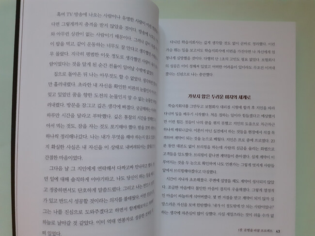 책은 한 사람의 인생을 바꾸기도 합니다. 깊은 통찰력을 가질 수 있게 하는 마법이 있습니다. 하고자 하는 의지가 있다면 해내고야 말겠다는 신념이 결과를 만듭니다.