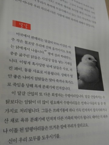 이제는 이 책을 보고는 육식이 어려워질 듯 하다. 물론 식습관이 하루아침에 바뀌는건 아니겠지만