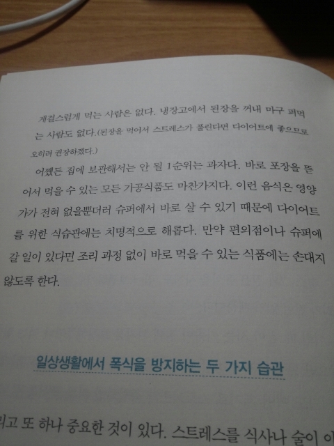이 책은 운동의 중요성을 크게 부각하지 않으면서 식습관부터 개선하라고 강조하고 있는