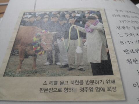 故 정주영 회장이 자신의 고향 북한에 소떼를 선물한 모습을 그린 장면이다.