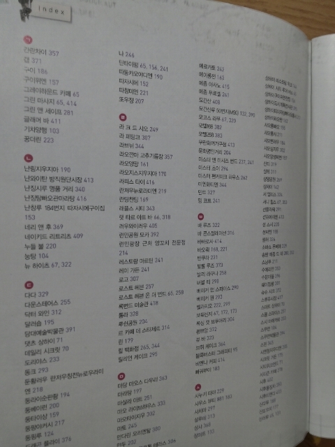 마지막에는 수 많은 곳들을 쉽게 색인해볼 수 있도록 index를 구성해넣었다.