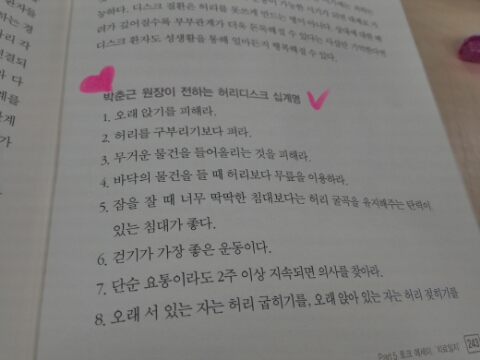 허리디스크를 7년째 앓고 있는 내게도 아직 모르는 정보나 상식들이 이 책엔 많이 나와있다.