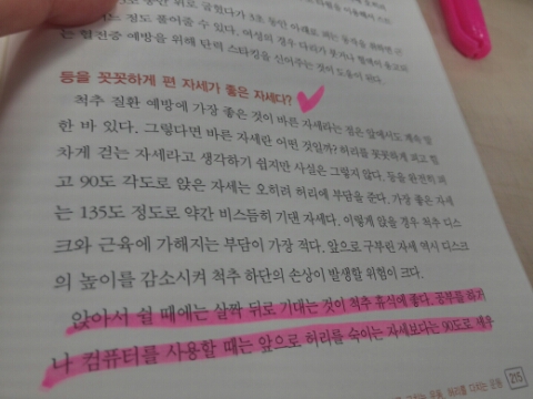 실제로 실행 가능한 내용들이여서 매우 유용했다. 허리를 직각으로 세우기 보다는