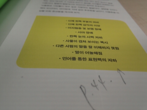 페이지 44에서는 자신의 증상을 자가 체크해볼 수 있는 9가지 증상들을 다음과 같이 설명해주고 있다.