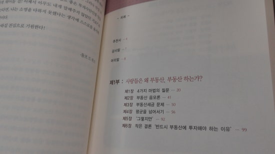총 3부로 구성되어있으며, 부동산에 열광하는 사람들이 왜 있는지와 투자하는 방법,