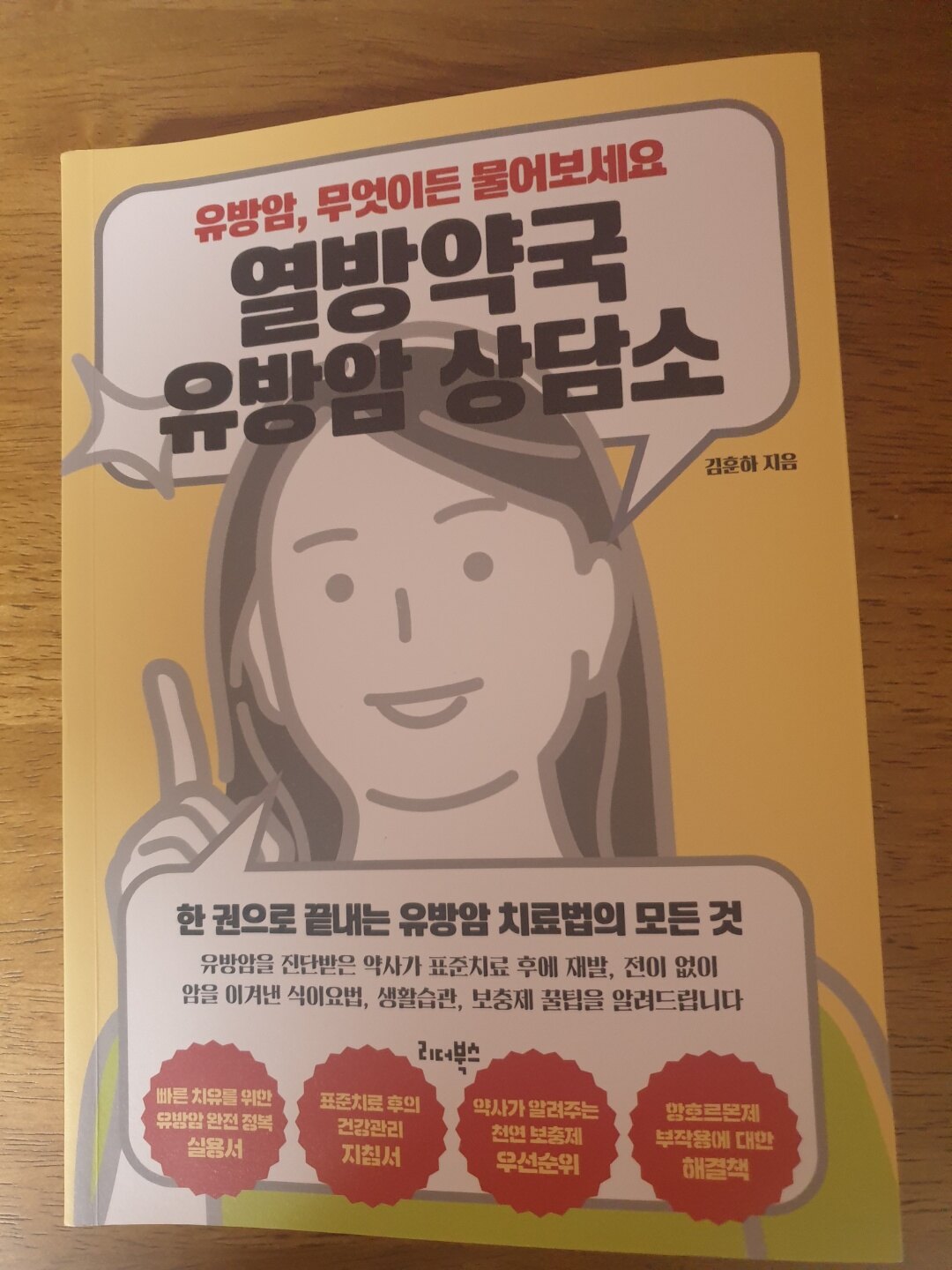 가능하면 주 5회 이상 하면 좋다. 책을 읽으면서 항암제를 사용했을 때의 부작용과 대처법 부분에서 특히 주변의 암환자가 있다면 도움을 줄 수 있는 부분이 많아서 마음에 들었다. 탈모와 구토, 손발톱 변화 등 직접 겪거나 들었던 일들이 자세히 나와 있어 메모해 두었다. 이 과정에서도 야채식습관이 관절과 근육통에 효과가 있다고 하니, 특히 앞으로의 식생활 개선에 힘써야겠다고 생각했다. 저자가 실제 약사이기에 해당하는 식품들과 작용법, 그리고 치료약이나 부작용등에 대해서도 믿을만하게 기술되어 있고 개인적 경험까지 다루어져있어서 유방암 환우들이 읽으면 도움이 될 것 같다.
