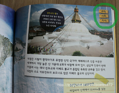 이 페이지에는 과학, 사회, 지리 등 다양한 융합형 구성이 되어 있어요.