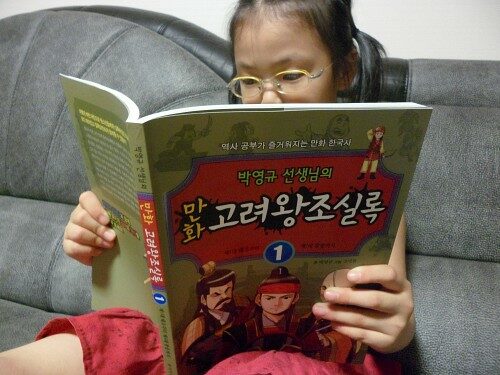 언니 보던 책을 들고는 만화 책이라 술술 읽어가며 푹 빠져 있어요