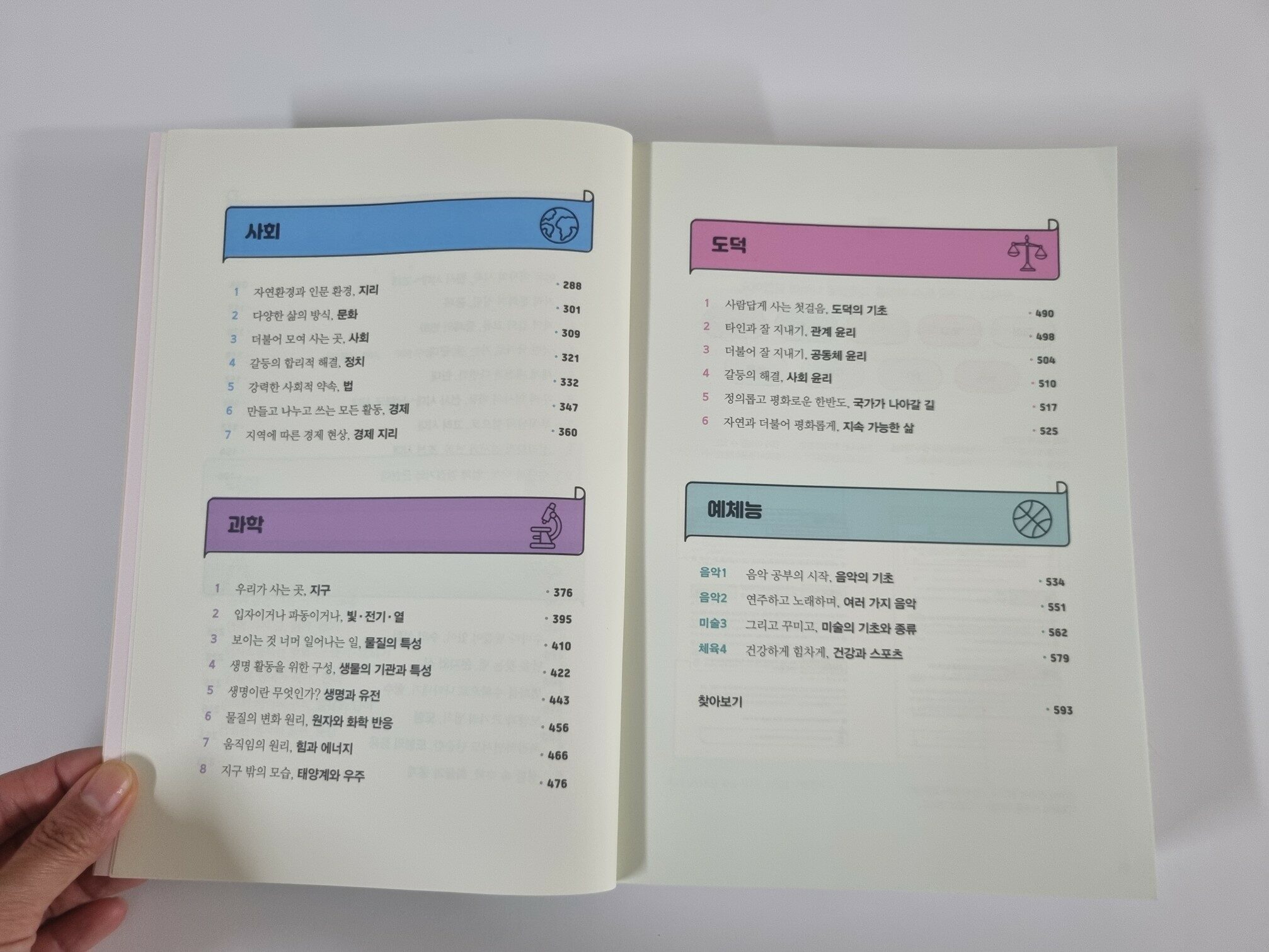 사회, 역사, 과학, 도덕, 예체능까지 담겼고