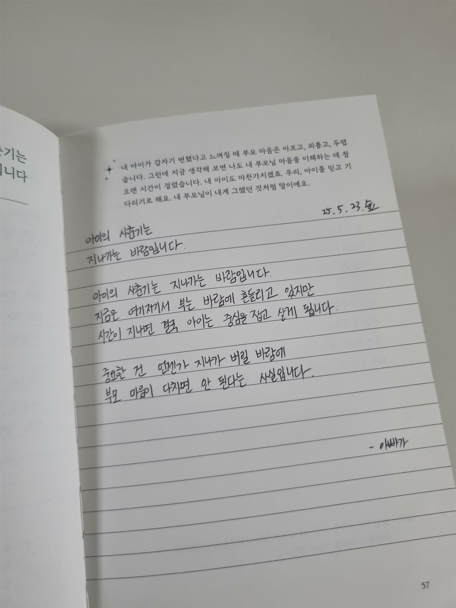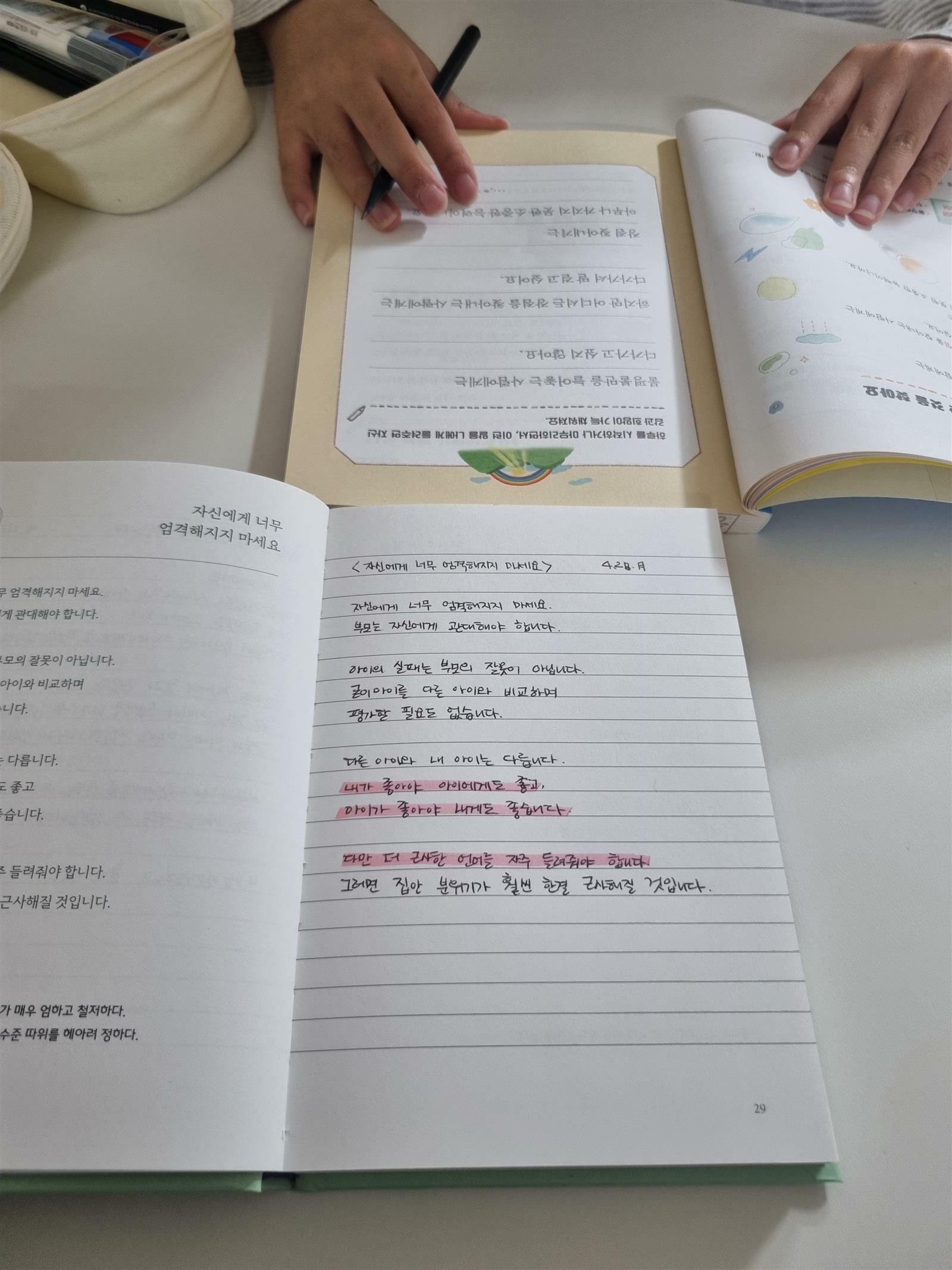 사춘기 자녀를 대하는 부모의 마음도책에서 필사를 통해 잘 다듬을 수 있었어요.