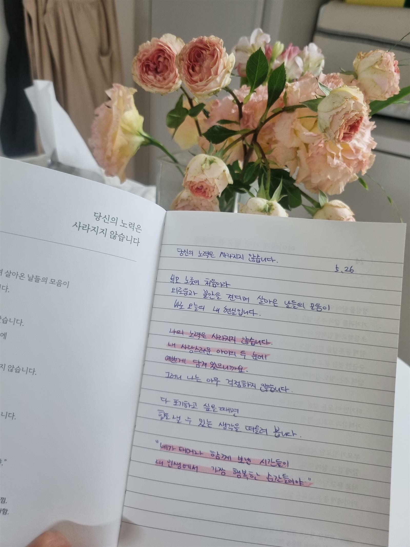 책에서 늘 예쁘고 지혜로운 언어로잘 하고 있다,잘 할 거다, 응원해 주니