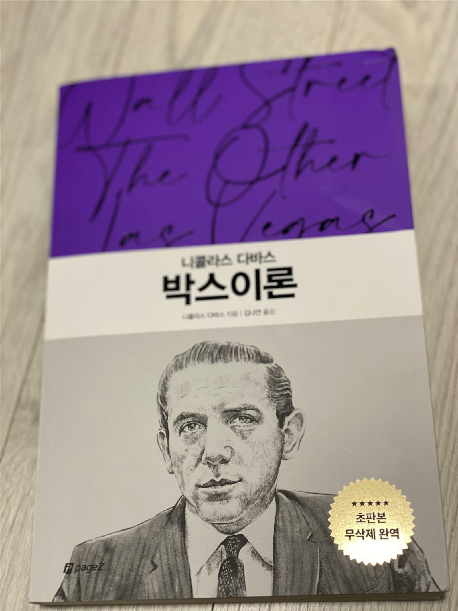 저자인 니콜라스 다바스는 뉴욕 클럽 라틴 쿼터 에서 정기공연을 할 정도로 유명한 댄서였으나, 자신만의 원칙으로 200만달러 의 수익을 올리며 시장의 새 역사를 만들었다. 그리고 첫 책 [나는 주식투자로 250만불을 벌었다] 는 40만부이상 판매되고, 그의 책으로 인해 뉴욕증권거래소의 법을 바꿀정도로 영향력을 끼쳤다. 그의 책은 1960년대의 출판한 내용임에도 불구하고 지금까지도 주식투자자들의 베스트 셀러이다. 다바스는 연신 주식투자와 카지노 도박과 비교한다. 내 주변의 어른들이 말씀하시던 주식은 도박이다 위험하니 하지말아라 하는 이야기와 동일한 연장선이다. 다바스는 주식을 산다는 것은 카지노칩을 바꾸는 것과 같다고, 투기로 인해 만들어진 가격변동을 이용해 돈을 버는 방법이라고 말한다. 물론 카지노와는 중요한 한가지 다른 점이 있다고 말한다. 바로 중개인들의 수익을 위한 중개수수료. 그가 첫번째로 소개하는 원칙은 ‘새어나가는 돈을 막아라’ 이다. 현재 한국의 증권사의 매매매수수료는 0.015% 부터 0.1%까지 증권사별로 금액별로 다양하다. 매수한번 매도한번 매 거래시마다 거래될때마다 나가는 수수료는 결국 새어나가는 돈이다. 주식투자에서 중요한 리스트관리는 수수료관리도 포함되어야하지않을까. 본격적으로 박스이론에 대해 이해해보자. 주식투자의 성공요소는 언제사고 언제팔 것인지이다. 진리처럼 통하는 ‘무릎에서 사서 어깨에서 팔아라’ 헌데 언제가 무릎이고 언제가 어깨인지 알수있는 방법을 알기엔 너무나도 어렵다. 다바스가 친구에게 설명한 박스이론의 예시를 가져와 본다. 35달러에서 40달러에 형성된 박스에 들어가 있고, 역대 최고가가 40달러짜리인 주식일때, 40달러를 돌파하면 확실한 상승세이다. 보통 40달러 10센트에 주문을 넣고, 39달러 90센트에 주식 손절매를 해둔다. 가치투자를 외치던 대부분의 주식책을 보던 나에게 니콜라스다바스의 박스이론은 일종의 혁명이론이었다. 그는 주식투자야말로 도박과 비슷하며 도전정신과 인내심을 갖고 이기는 편에 서야한다고 말한다. 물론 박스이론이 산업과 관련된기본적인 정보나 수급등등을 무시하려는 것은 아니다. 그런 기본적인 내용에 기초해서 오를만한 기업을 고르고 상승세를 타면 박스이론으로 주식매매를 해야한다. 아직 주식초보인 나에게 박스이론은 신세계이고, 흥미로운 이야기였다. 그리고 이제 실행만 남았다! 출판사로부터 도서를 제공받아 작성한 리뷰입니다.