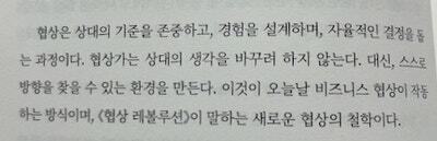 묘미를 보여준다. 이러한 협상의 마인드 셋이 완성된 협상가라면 더 이상 ‘이기려는