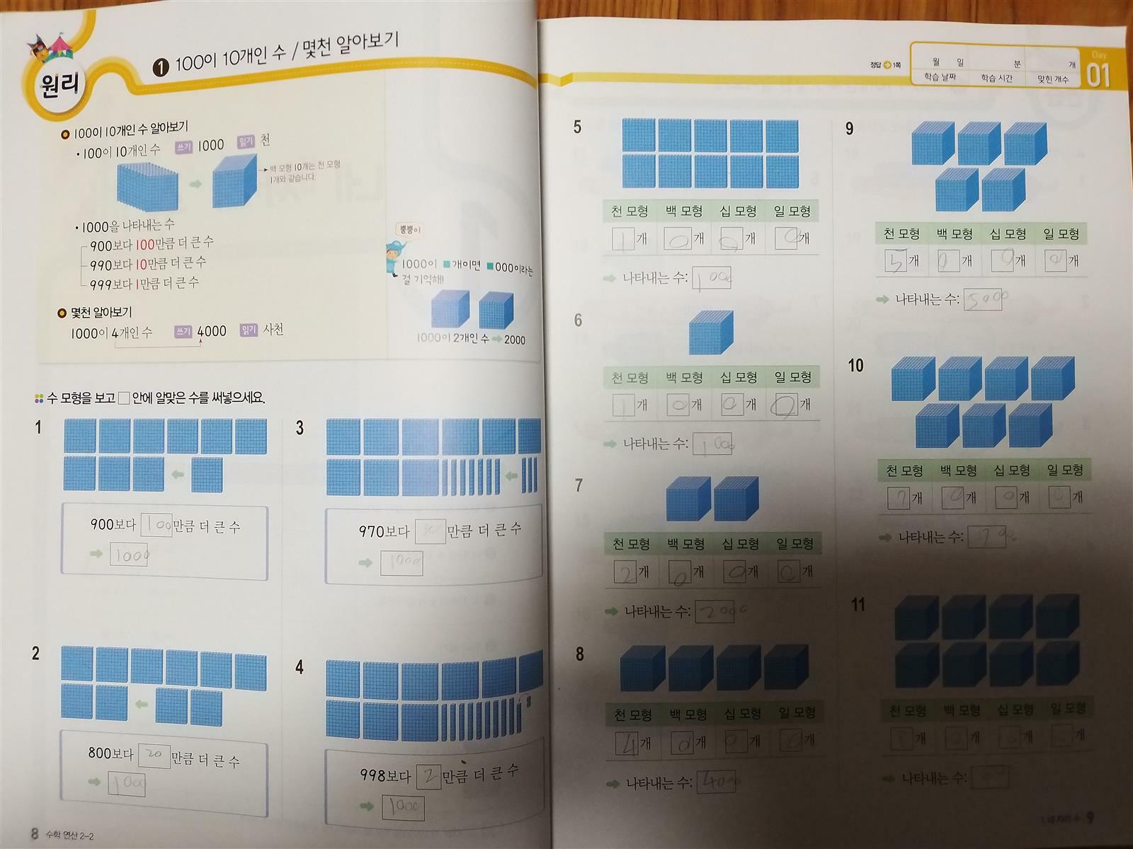 온라인 개학으로 2학년 태경군은 1학기 수업을 온라인강의로 병행하면서 동아출판 초능력 수학연산으로 2학년 2학기 내용을 공부하고 있어요~ 초능력 수학연산에도 무료스마트러닝으로 초능력쌤이 우리집에 오는듯한!!! 연산 원리 동영상강의를 들을수 있어 내용을 이해하는데 큰 도움을 받을수 있어요~ 2학년 2학기에는 1. 네자리수 2. 곱셈 구구 3. 길이재기 4. 시각과 시간을 배우나봐요.. 먼저 1단원 네자리수부터 시작해봅니다.. 1학기때는 세자리수 백에 대해 공부했었는데 한자리 늘려서 네자리수 천에 대해 공부해보았습니다~ ■ 학습목표 ■ * 100이 10개인수, 몇천 알아보기 * 네자리수 알아보기 * 각자리의 숫자 알아보기 * 뛰어세기 * 두수의 크기 비교 ☆ 원리 ☆ 학습 내용별 연산원리를 문제로 설명하여 계산 원리를 스스로 익힐수 있도록 도와줍니다.. ☆ 연습 ☆ 학습 내용별 원리를 토대로 문제를 해결하면서 수학실력을 향상시킬수 있답니다~ ☆ 적용 ☆ 학습 내용별 연습한 연산원리를 스스로 문제를 해결하는 능력을 키워볼수 있어요~ ☆ 평가 ☆ 한단원을 잘 이해하고 있는지 종합적으로 평가도 할수 있습니다.. 동아출판 초능력 수학연산은 원리 -> 연습 -> 적용 -> 평가 4단계로 교과수학내용을 쉽게 이해할수 있도록 도와주고 있답니다.. 교과연산 초능력 연산으로 2학년 2학기 내용을 하루 2장씩 미리 예습해 봅니다~ *** 이포스팅은 해당 기업의 교재를 받아 작성하였습니다 *** #초능기초문제집 # 초등연산문제집 # 초등수학연산문제집 #초등연산 # 초등수학연산 #초등기초학습능력 #초능력 #제대로키우자 기초학습능력 #초능력쌤 #무료 스마트러닝 #동아출판