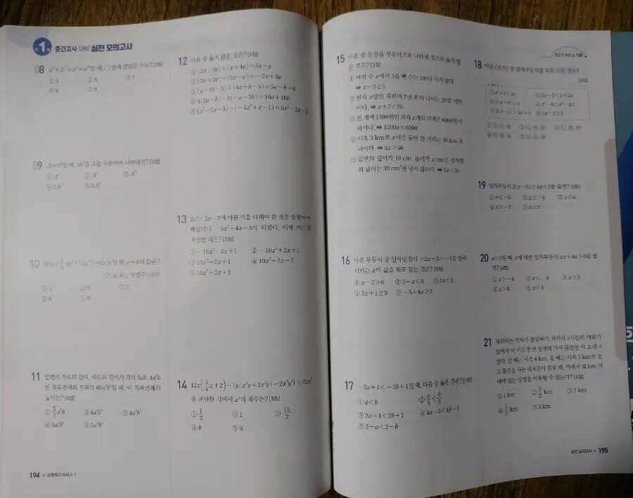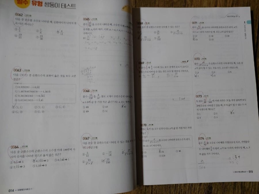 실력플러스문제, 최상위문제,서술형문제로